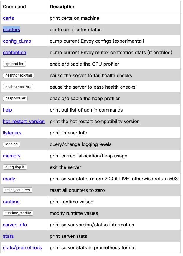 <Node IP>:8001可查看 Envoy 的所有配置情况