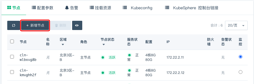 从 QKE v2.0.0 版本起支持创建单节点集群(只创建一个主节点),方便用户快速测试使用。用户可以随时增加工作节点对集群进行扩容(无法增加主节点)。