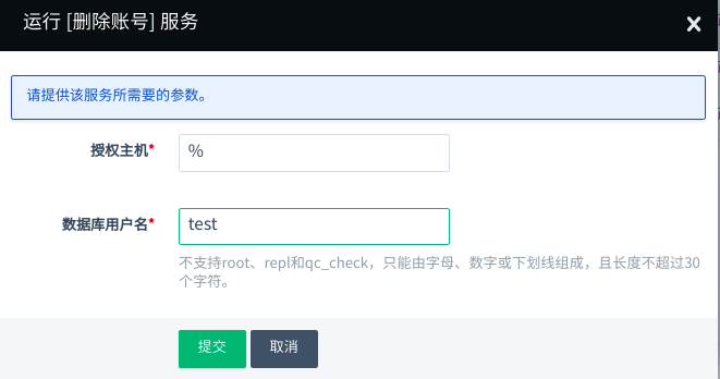 - 系统保留 root 、qc_check 、 repl 账号来进行自动化运维和数据同步,请勿删除这三个账号,以免破坏系统的运行。