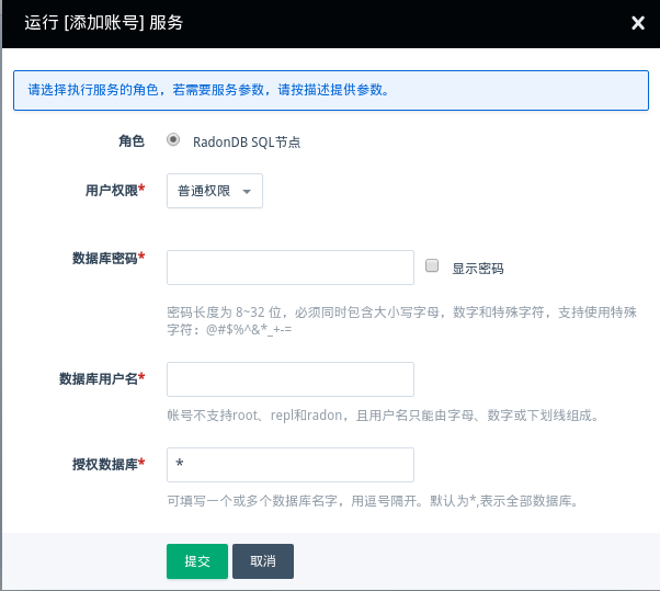 要创建新账号时,需要指定账号密码,支持 database 级别的租户隔离。