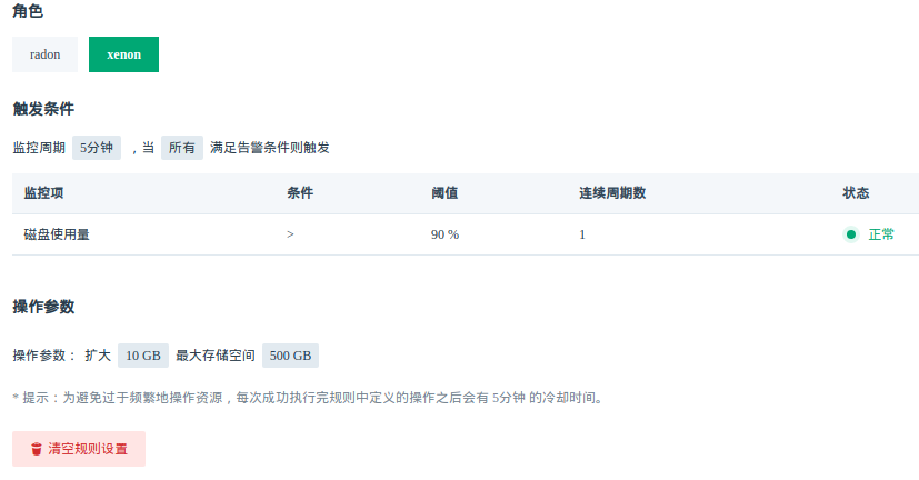 RadonDB 支持自动扩容应用存储空间,详细请参考自动伸缩。