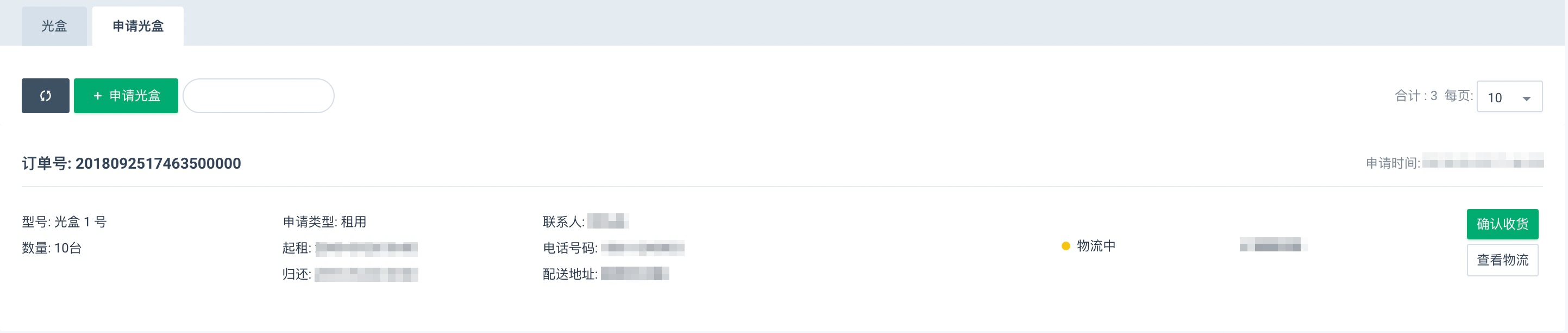 点击”申请光盒”, 输入相应的信息以提交申请。