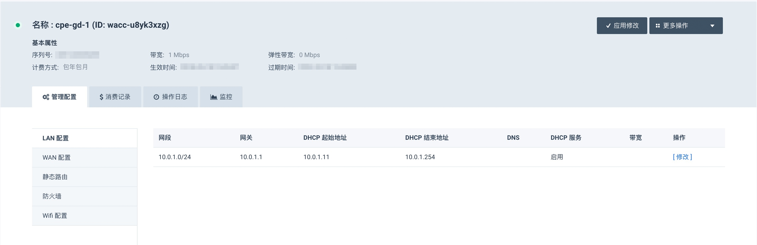 配置完后, 可以在接入点详情页里修改静态路由, 修改后需要点击”应用修改"以生效。